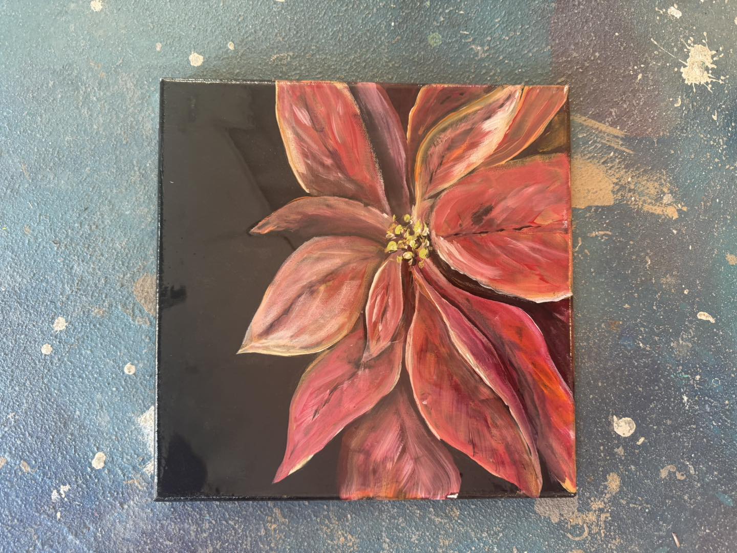 Join artist Sherry at Sherrys Art Studio Palm Coast for an inspiring and festive painting workshop you won’t want to miss. This event offers a hands-on opportunity to create a stunning poinsettia painting on a 12x12 gallery wrapped canvas using acrylics. Under Sherry’s expert guidance, you will learn advanced layering techniques and how to effectively use a blend of oranges and reds hues and against dark colors to capture the dramatic, holiday essence of this beautiful flower.