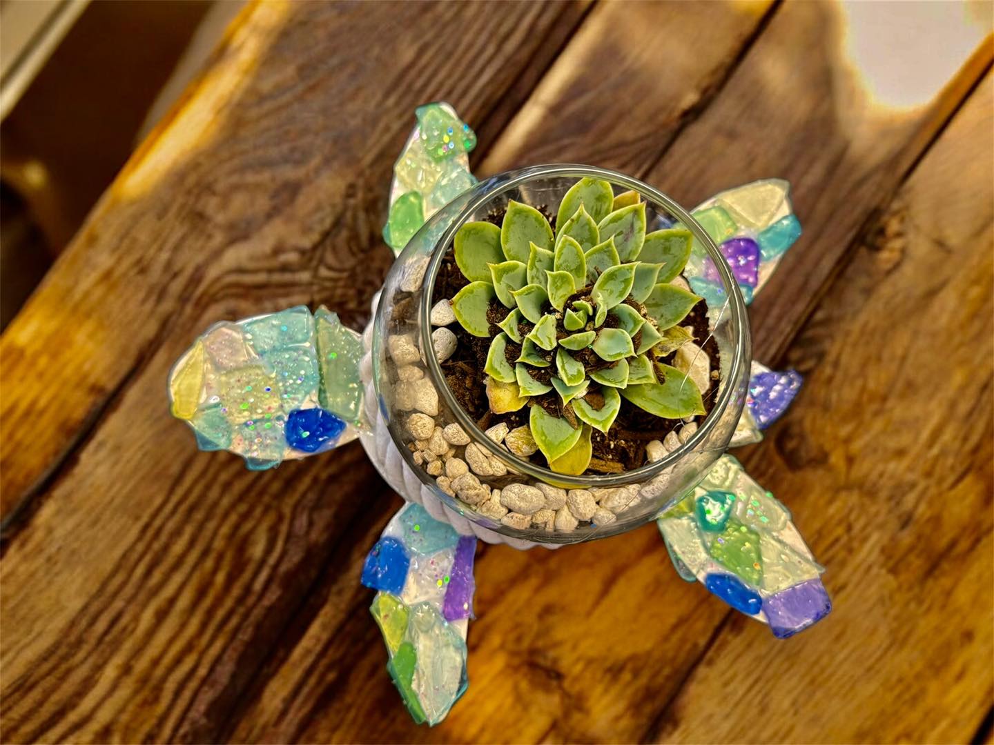 At this hands-on session, you will learn how to craft a stunning 12-inch sea glass sea turtle succulent garden. Sherry will guide you through the process of blending sea glass, nautical rope, triple thick , glitter, and a lovely bubble vase to create a captivating coastal centerpiece. All materials are included, making this a perfect opportunity to enjoy an afternoon of artistic exploration without any hassle.